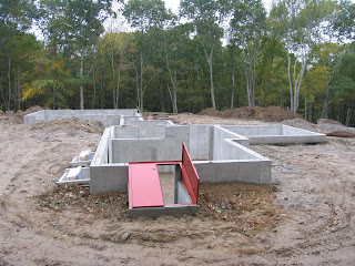 We finally have walls. Not many walls, but walls nonetheless. This is facing the coffee room, a 100-square foot space with ten-foot ceilings and casement windows on three sides. I never thought I'd see this. Things should really start to move quickly now - our goal is to get the Dryvit guys in right around Thanksgiving. Keeping our fingers crossed. Tightly.